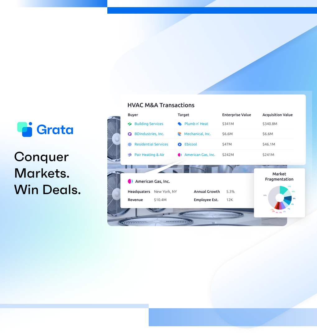 Grata’s end-to-end dealmaking platform helps investors navigate private markets with confidence. Powered by investment-grade data and proprietary AI, Grata enables dealmaking professionals to source deals, streamline diligence workflows, and connect with other dealmakers all in one place.