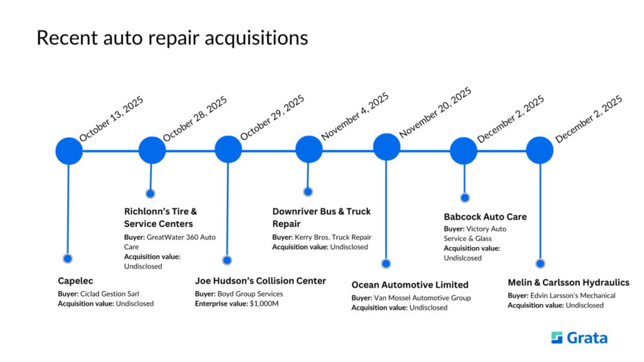 Here are a few of the events related to the auto repair industry that dealmakers can find and track in Grata:
