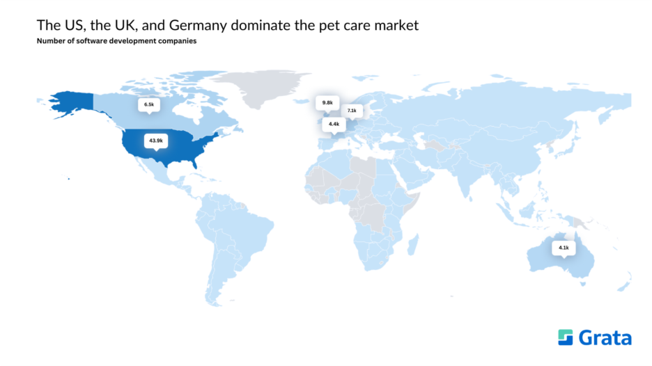 The US leads the global pet care market by number of companies, followed by the UK and Germany. Other major players in the space include Canada, France, and Australia.