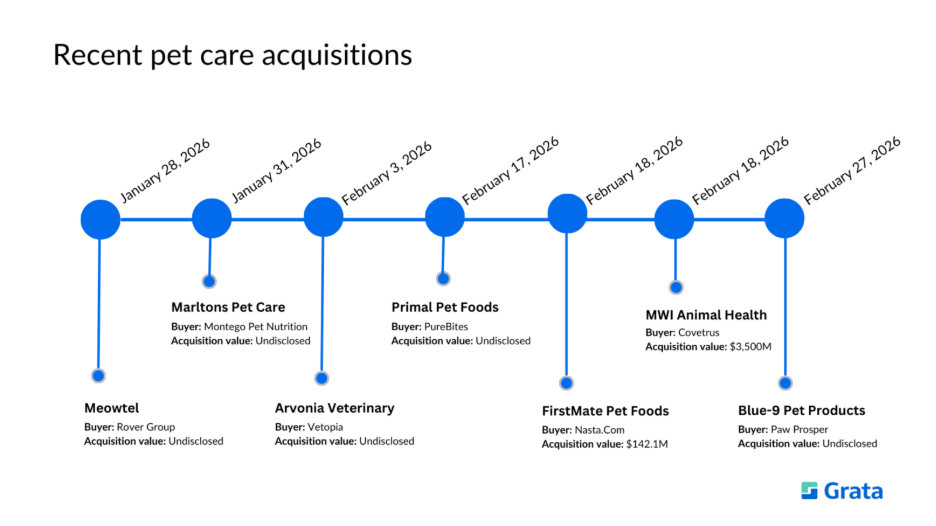 Here are a few of the events related to the pet care industry that dealmakers can find and track in Grata: