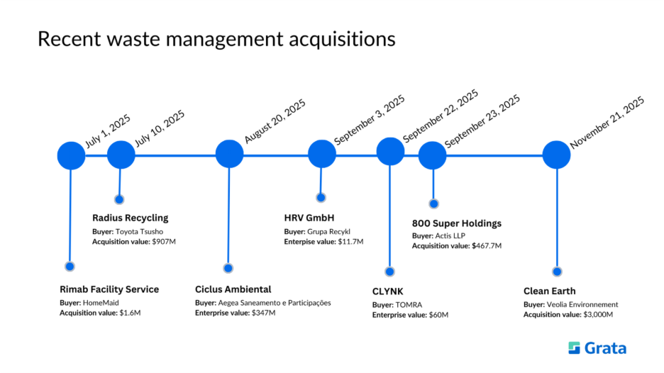 Here are a few of the events related to the waste management industry that dealmakers can find and track in Grata: